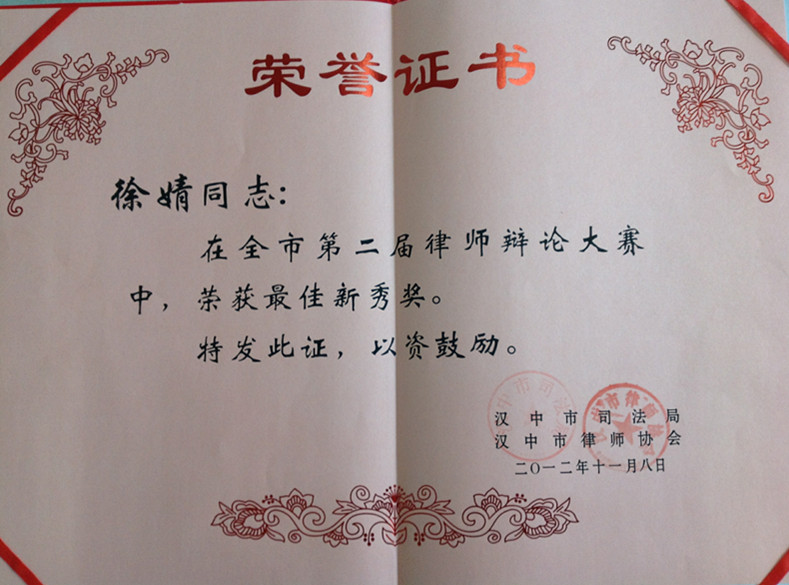 2012年11月7日,汉中市第二届律师辩论大赛在汉中市温州大酒店拉开帷幕,全市14个律师事务所共16支代表队参加了本次比赛。经过两天激烈的角逐,陕西嘉盟律师事务所第二代表队以总分第二的成绩闯入决赛,最终获得了亚军的佳绩。在本次比赛中,除获得团体二等奖项外,我所两名队员王蕖、徐婧分别获得“最佳辩手”和“最佳新秀”个人单项奖。这次辩论赛所取得的成绩,不仅包含了参赛队员的辛勤付出,更是全所人员智慧与无私的凝聚,体现了嘉盟律所齐心协力的团结精神,相信在这种精神的指引下,嘉盟律所一定会再创辉煌!