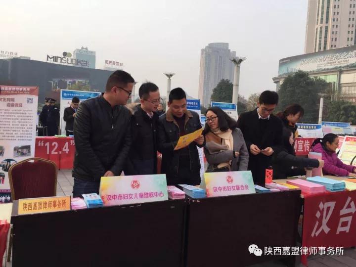 2017年12月4日是我国第四个国家宪法日。为了进一步深入贯彻党的十九大精神,按照十九大报告提出的“加大全民普法力度,建设社会主义法治文化”的要求,由汉中市司法局、汉台区司法局主办的12.4国家宪法日法治宣传活动在汉中市中心广场隆重举行。陕西嘉盟律师事务所在主任郭连庆律师的带领下积极参与了此次法治宣传活动,为国家宪法日法治宣传活动添柴加火。