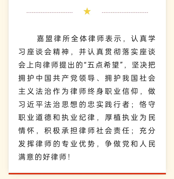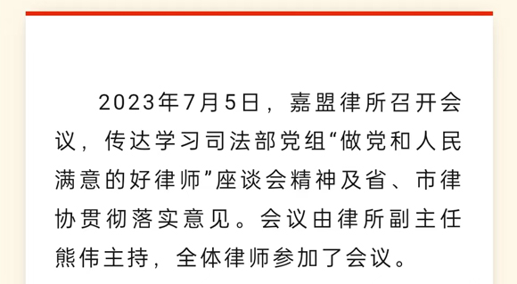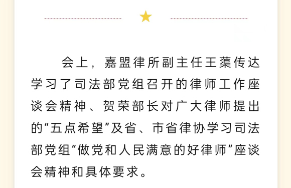 嘉盟律所传达学习司法部党组“做党和人民满意的好律师”座谈会精神